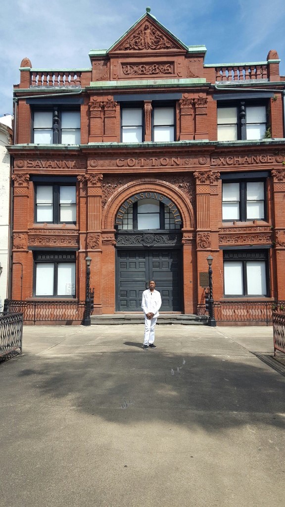 It was the beginning October of that year when I drove into Savannah, GA wearing all white. Again, I just moved as I was moved. The city of Forest Gump and Roots filming welcomed us with warmth. I had stopped over in Atlanta and picked up my partner. She was there on business and my sojourn through was a convenient link for the both of us. Massive live oaks with wavy fingers dripping with Spanish moss hovered overhead. People milled about with seemingly no particular place to go. I loved the city with all my senses. We hit the ground running and took photos on the bench where Forest Gump had waxed philosophical. After a few blocks and photos in front of a Masonic building, we decided to do the trolley tour.