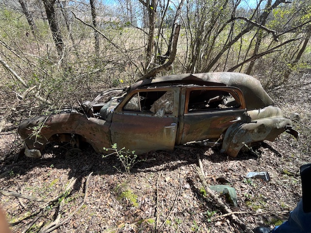 The other day, while walking in the woods of some property in the country, we came upon the crusted remains of an old Oldsmobile. It was the bare essence of a former glory—its frame twisted by time, its once-glossy paint now a muted patchwork of rust and decay. Time arched over it, nature had begun reclaiming it, vines weaving through the skeletal remains, composting leaves and branches settling into the crevices where an engine once roared. I know there had to be some wildlife housed somewhere beneath its hulking frame. At one point, this car had been a concept, a design, a plan, then brand new, rolling off a showroom floor with a pristine shine, full of promise. Possibly the esteemed object of someone’s dream. How many families had been transported back and forth, voices drifting from the windows as it sailed across the open terrain, ‘the new ruling power of the road.’ Then it was all over. Now, it sat still, wedged into the earth, forgotten. My first question was how it got there. Then something a lot more relevant: this too will pass.