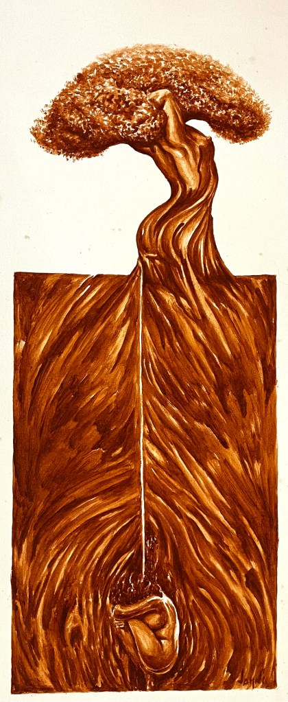 When I looked around me at the array of red clay values, alchemy comes to mind. I’m not just painting g with a substance. This material is imbued with the blood of our ancestors. I am painting with an iron-rich life substance – a conductor in the highest order. That is golden. My mind then turned to an often overlooked detail in the legendary story of David and Goliath. David, the shepherd boy, had honed his skill on the hillsides near his family’s home. He had forged his will out there in solitude where no one else could see. He had built his confidence, his faith muscles in the crucible of time and the elements where he was alone guarding and caretaking for sheep. Before David stepped onto any battlefield, before he took up his sling, before he walkup up on a giant that punked seasoned warriors—he made sure his actual compensation was clear. All the accolades, awards, and pats on the back aside. He was making sure he was getting paid.